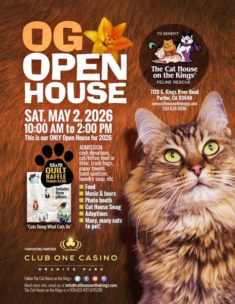 We need your help! Check out how YOU can make a difference in the life of a cat at The Cat House on the Kings. We are a 501(c)(3) non-profit corporation (EIN 27-0015288), so your cash donations are tax-deductible.