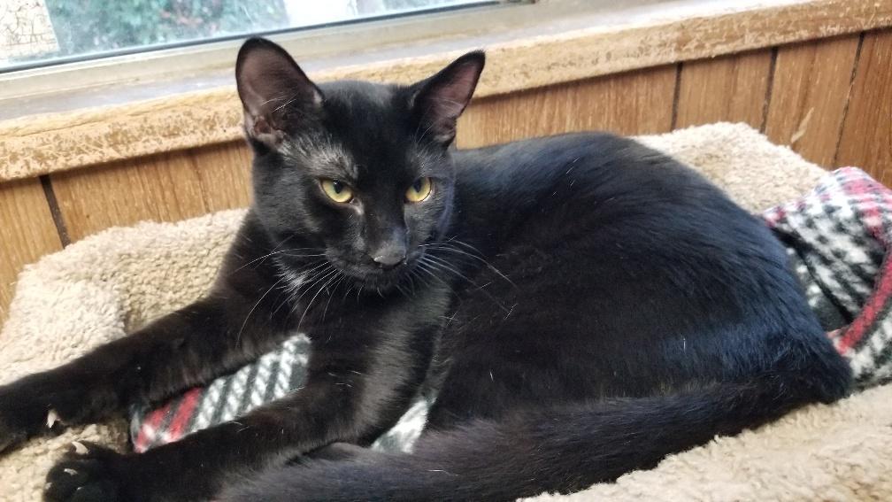 This handsome boy is ready to be adopted. He's really sweet, outgoing, and just a great cat. Cat 18766 really enjoys being around people and he doesn't mind being around other cats. His favorite thing to do is play with your shoe laces. Due to the abundance of black cats he will most likely live the rest of his natural life at The Cat House on the Kings and a sponsor would be appreciated.