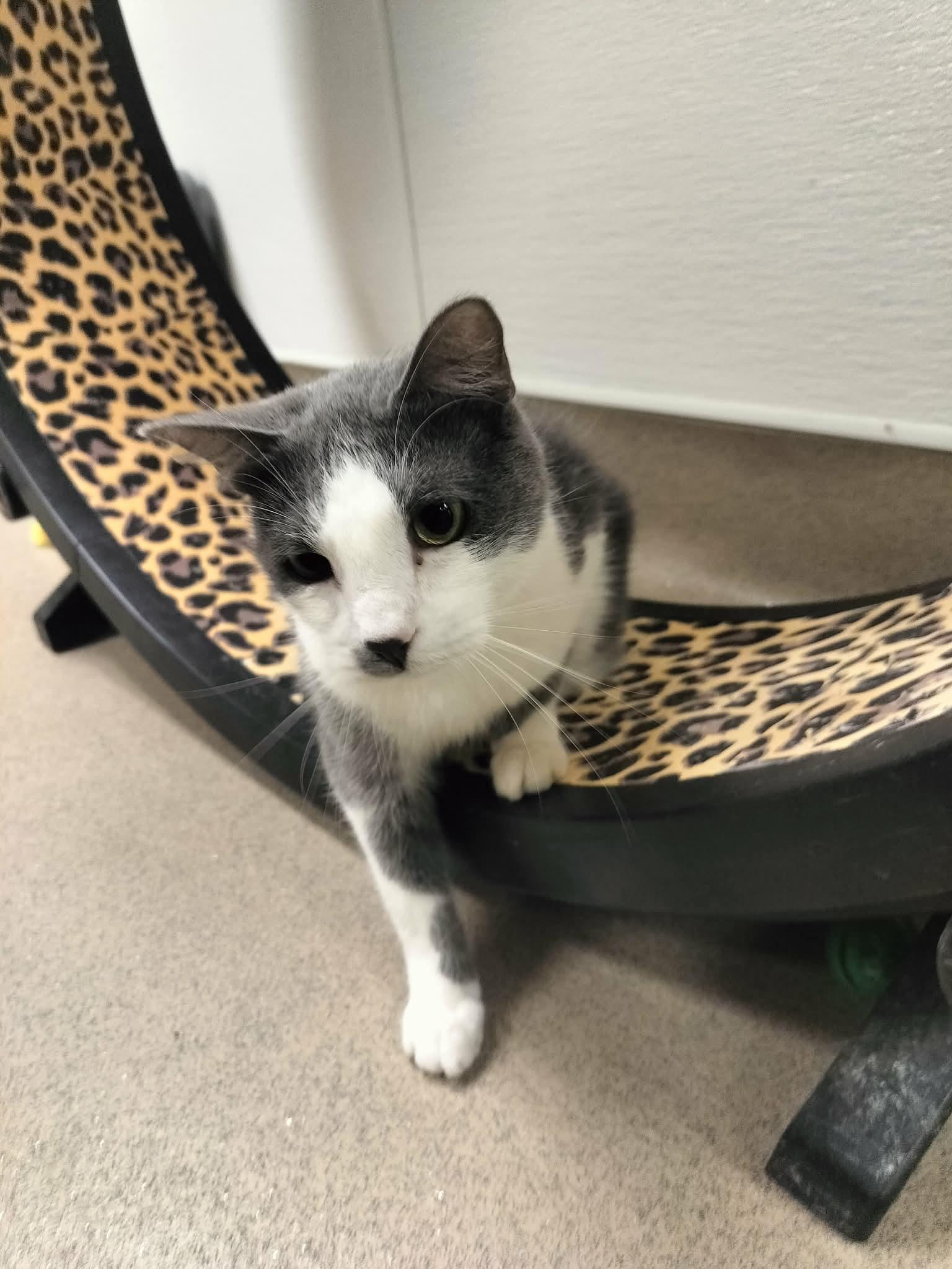 Hi there! My name is Ollie, I was born outside by a tire shop with my three siblings. I didn’t like it outside; it was scary and dirty and there were lots of ugly bugs! My siblings and I got to go to a foster home where it was clean and I didn’t need to feel afraid anymore. My foster mom gave me soooo much love; lots of snuggles and pets. I got to play with toys and my favorite toy is Fishing LIne. I even discovered playing with water was fun too! I also get along well with many other felines whom my mom is also fostering. I sure hope a family will take me home with them so I can show them that I like to play, love to purr, and I will feel safe from all those yucky bugs!
