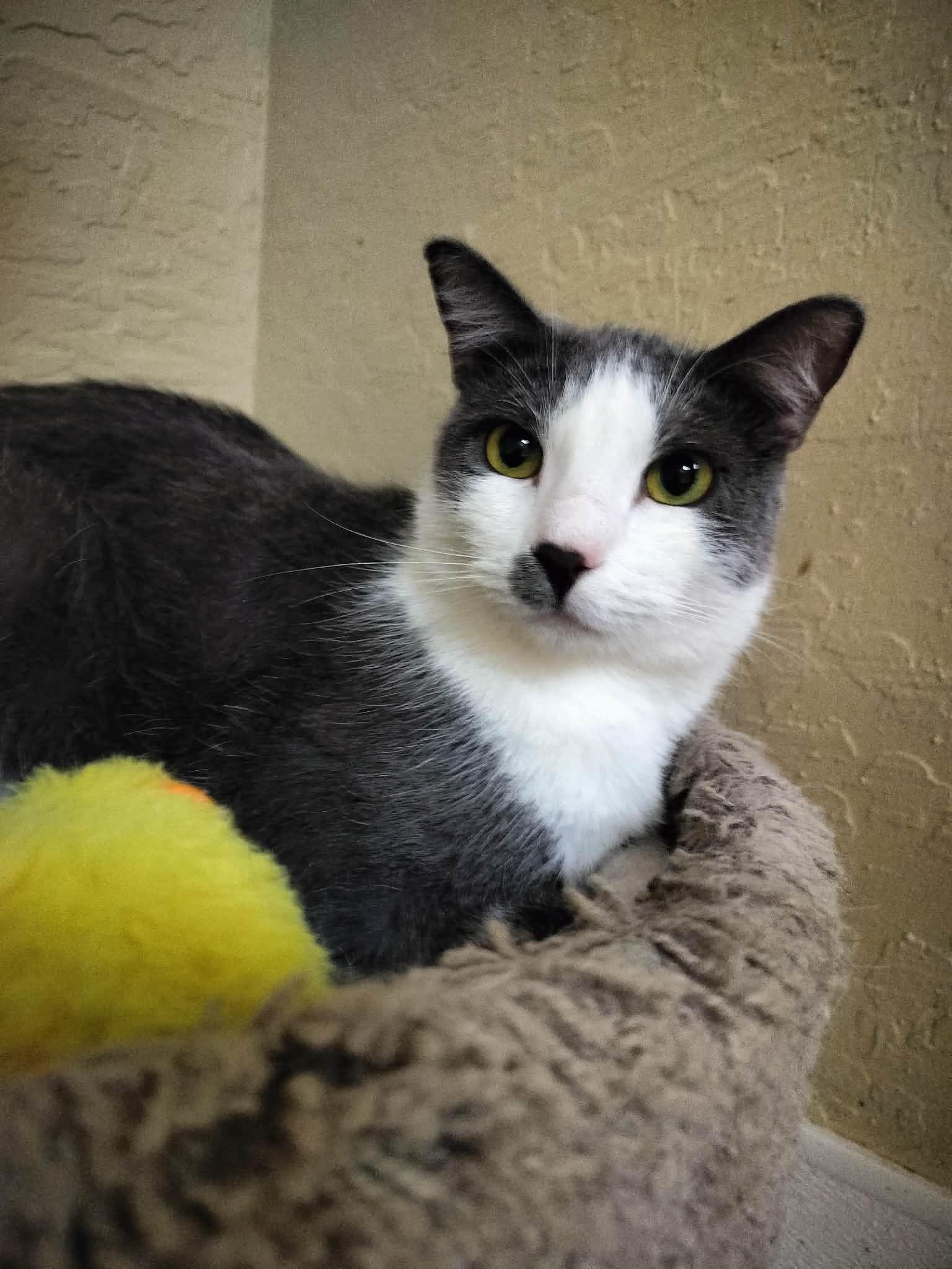 Hi there! My name is Ollie, I was born outside by a tire shop with my three siblings. I didn’t like it outside; it was scary and dirty and there were lots of ugly bugs! My siblings and I got to go to a foster home where it was clean and I didn’t need to feel afraid anymore. My foster mom gave me soooo much love; lots of snuggles and pets. I got to play with toys and my favorite toy is Fishing LIne. I even discovered playing with water was fun too! I also get along well with many other felines whom my mom is also fostering. I sure hope a family will take me home with them so I can show them that I like to play, love to purr, and I will feel safe from all those yucky bugs!