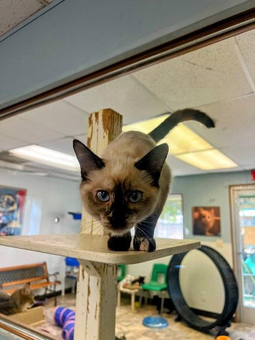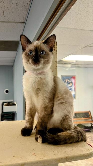With big, deep pools of blue for eyes, a luxuriously, downy-soft and silky coat, and her charmingly highlighted gold nose, and plume of a tail, precious?? is a truly gorgeous little girl! And she’s as happy as she is beautiful! If she knows you, you get to pet and cuddle her, and will be rewarded with her lovely purr and soft cheek rubs. She can’t resist a playtime and is especially fond of toys that dangle and anything that rolls! Such a lovable little beauty is sure to be a treasure in a great forever family that will treasure her.?? She's very vocal and overall just a sweet gal.?? Could darling Khloe be the perfect jewel for you?