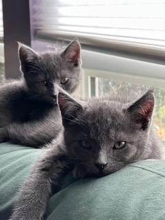 Both cats are affectionate and people-oriented once they feel secure. They love being pet and will happily bonk your hand to ask for more attention—especially if chin scratches are involved! Treats and wet food are also high on their list of favorites.