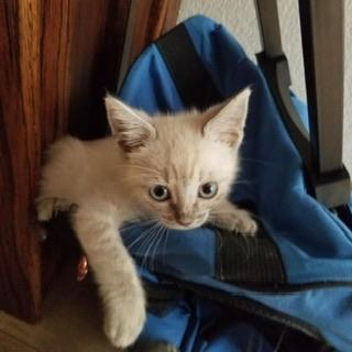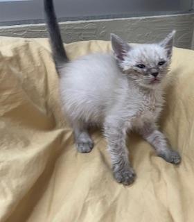Beautiful, bouncy Blondie is the sweetest girlie, soft as a cloud and delightfully cuddly. This precious meezer mix doll, the only one among her sibs, is adorned with delicate stripes like a blue Lynx point, one of six tiny darlings whose lives began in the shelter of a large, overturned flowerpot. With her crystalline blue eyes, highlighted by the cutest little brows, and a face that mirrors her gentle personality, she is purrfectly irresistible! She’s done well living with adult cats and with small children, though she has very little experience with dogs. Playful and lively, this sweetheart loves to bounce and pounce after rolling toys and bat soft cloth ones, always eager to see who can get to them first. Then she’ll find a cozy lap or spot on the bed for some snuggles and a nice snooze. With her winning combination of beauty, affection, and fun, she’s sure to be a beloved addition in a forever home that cherishes her. Could adorable little Blondie be the precious treasure for you?