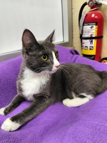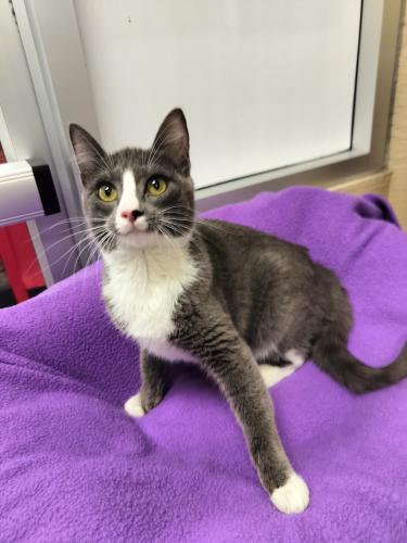 Roll out the red carpet for calendar girl beauty Mouse, as sweet and loving as she is full of fun and impish joy! She will make you laugh often with her great personality and gets along with pretty much everyone including other cats and dogs. Children are an unknown but should be fine considering her easy, out-going spirit. She’s a fan of balls and strings and every kind of toy, and even a game of peek-a-boo can keep her delightfully entertained! Though she has lots of energy and enthusiasm, if a good cuddle comes her way with her favorite purrson, everything else goes on hold! What a beauty she is in her smooth and satiny gray and white tuxedo charmingly accessorized with pristine white ballet slippers. Her precious little smile and gorgeous eyes are better than any flashy jewels! With her irresistible charm, cuddly affection, and picture-perfect looks, Mouse hopes she’s the darling you’ve been hoping for!