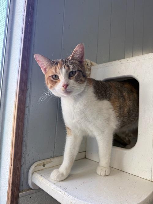 It’s no surprise precious Casey is a great favorite in the adoption center! Her caretakers report, she is the sweetest girl and loves to play peek-a-boo in boxes and enjoys a variety of simple toys. She has gotten along with other cats and she plays gently and is happy with simple things, it’s surprising that she can run with impressive speed if she’s chasing a rolling jinglebell ball or racing across the room! She’s also “very much a cuddlebug with an affectionate personality and should fit in well in many types of homes”. This sweetheart’s one-of-a-kind face is a showstopper, with densely fuzzy cheeks, dramatic black “eyeliner”, and a petal pink satin nose and little smile! She’s a irresistibly darling girl who deserves a forever home as sweet as she is. Could this cuddlebug calico be the beloved new treasure for you?