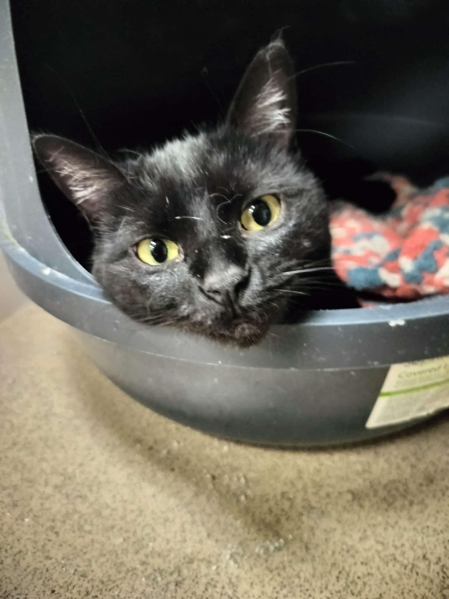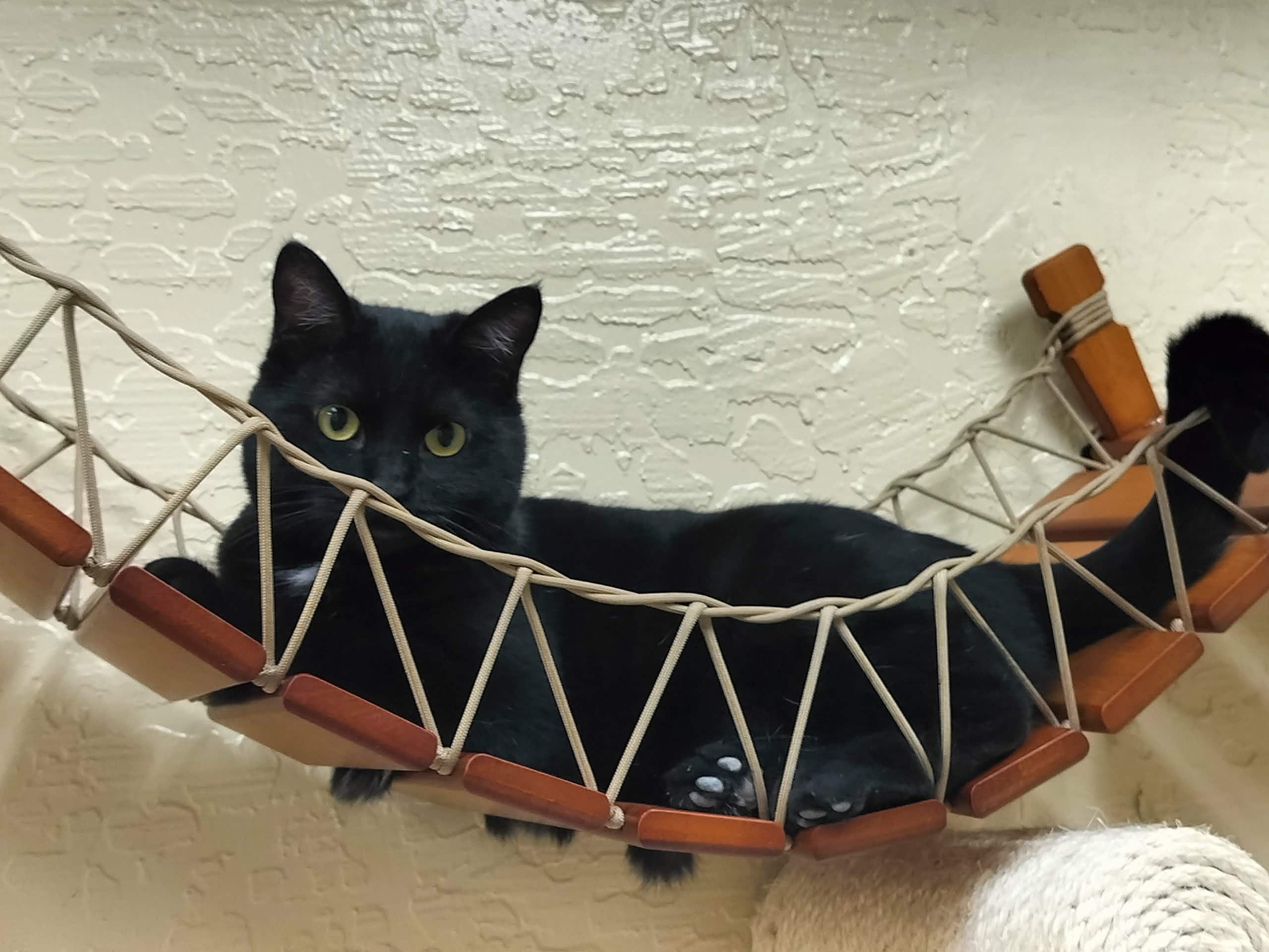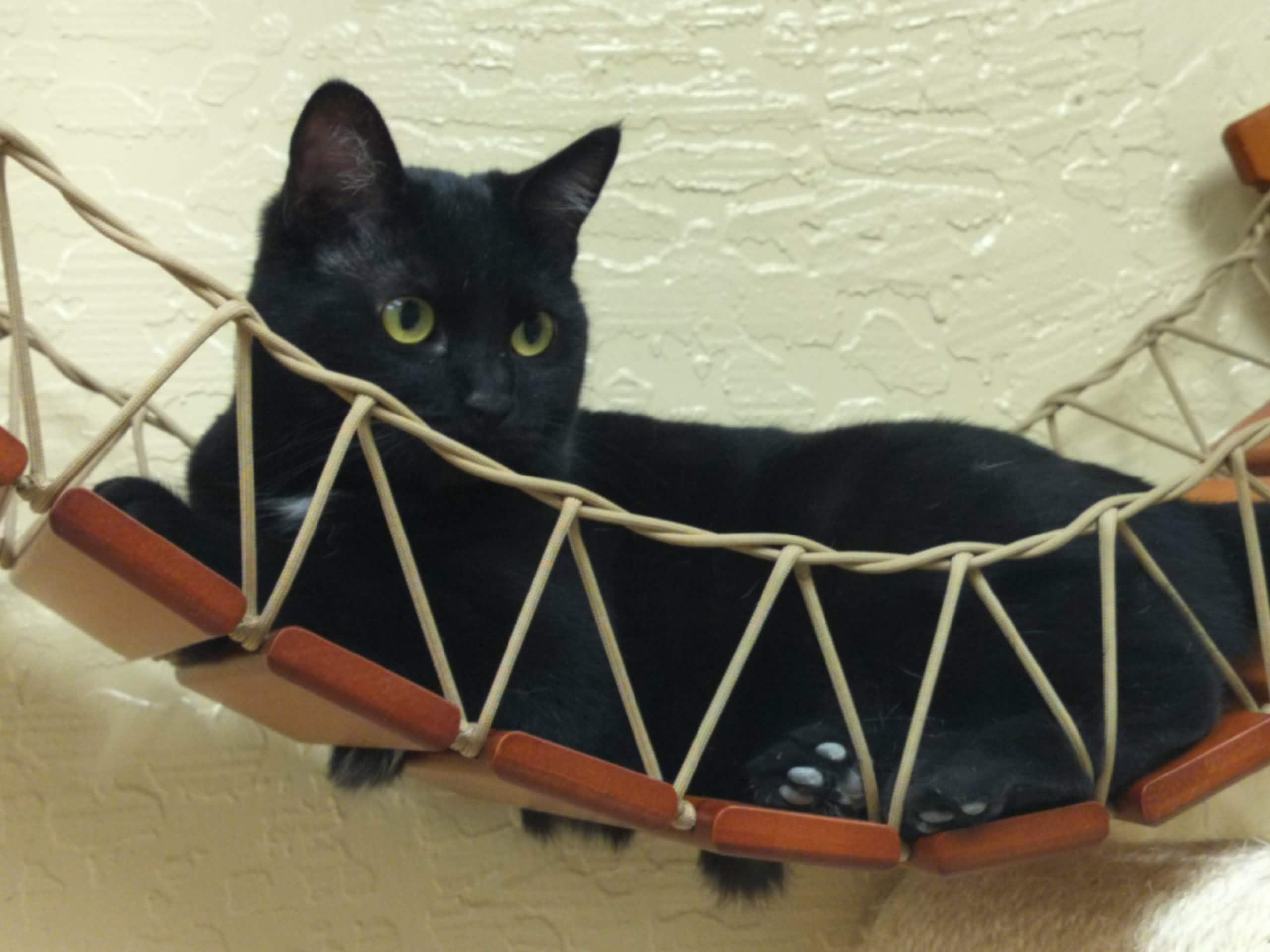 Ciabatta is as sweet as they come. Her temperament is gentle and quiet. She is incredibly patient with her babies, often letting them eat their fill of wet food first before having any or letting them play with her tail even when she’s not in the mood. Ciabatta is not super cuddly, but she does enjoy pretending to be your shadow. She’ll follow you around everywhere in the house and can often be found watching from high up in a cat tree. When Ciabatta is in the mood to play, her favorite toy is a catnip mouse. Her kitten side comes out when she has an open space to chase around toys or a break in a brand-new scratching post. Ciabatta would probably do best in a quiet home with a gentle owner that gives her plenty of time and space to warm up to her surroundings. She is okay with other cats, but very unsure about dogs.
