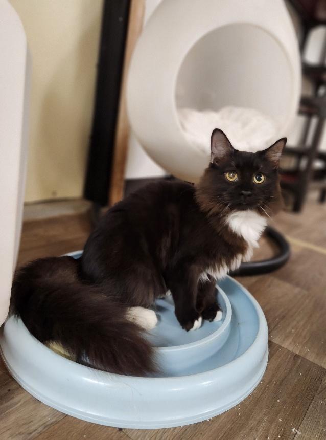 Could anyone wear a tuxedo more purrfectly than super fluffy and adorable Domino, whose attire is far from his only great charm! This very people-oriented darling loves to play, especially with