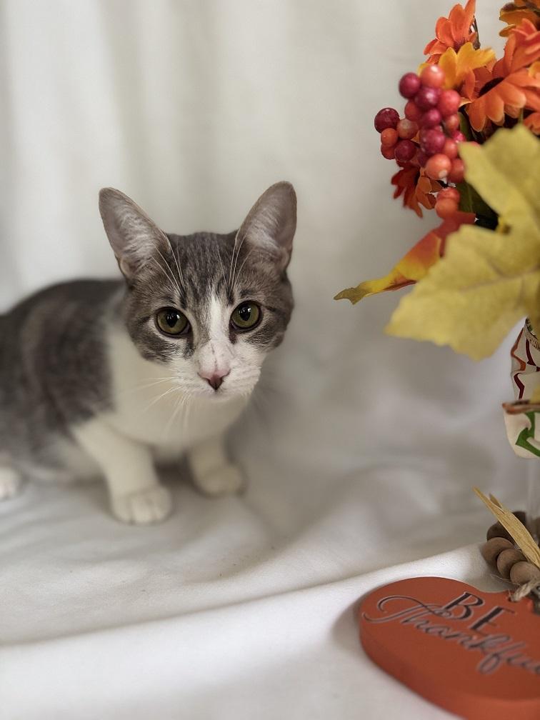 He adores playing with his siblings and foster brothers, and his favorite "toy" is a piece of leftover scratching post fabric that he proudly carries around and tosses into the air. Watching him zoom through the house or show off his silly side is sure to make you smile.