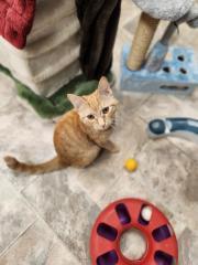 Beautiful Zinnia is a Picasso kitty in her luxurious, modern art coat of pretty redness. This quiet, mellow girl is a classic red tabby in looks and personality, able to entertain herself, happy playing or snuggling with her siblings and bigger cats. Best of all she's a greeter and a talker! She’s a playful sweetheart, especially if there’s a laser toy in the mix and is always gentle. Her low-maintenance vibe makes her easy-going about everything and picky about nothing. What a silky darling she is and sure to be a stunningly gorgeous big girl someday! Could precious Zinnia bring her sweet, soft, winsome self to the circle of your forever family’s love?