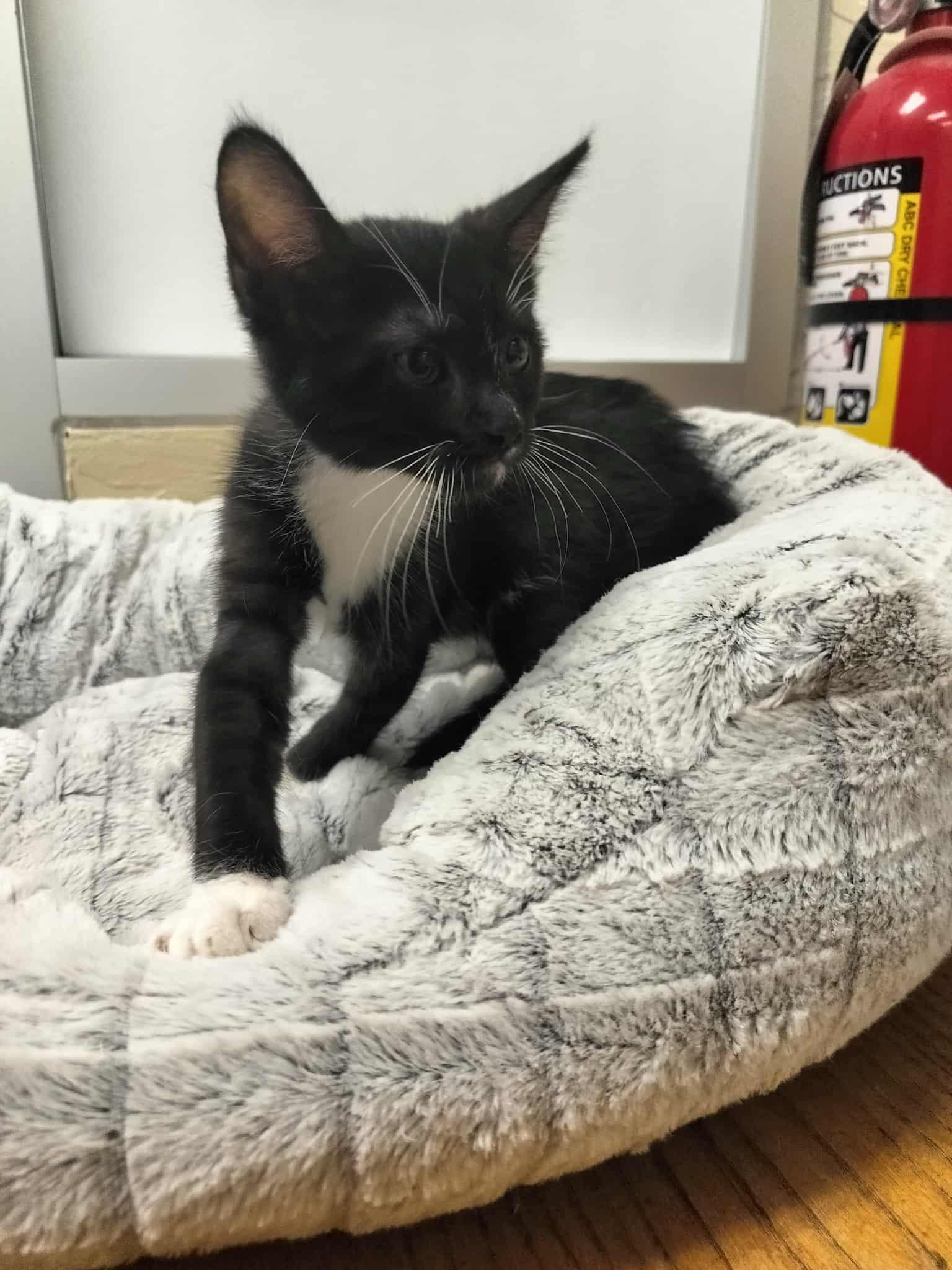 Rizo and Spot started life as precious bottle babies, and they’ve grown into the most affectionate, playful, and loving kittens you could hope for. This bonded tuxedo pair is inseparable and full of charm!
