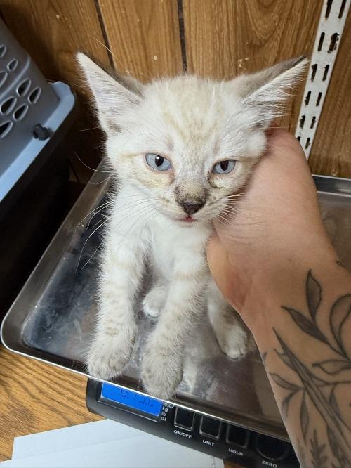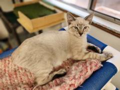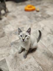 • Kitten 27344 (Sizzler) is shown as a Siamese Mix based solely on his appearance. We rarely take in purebred animals, so virtually all of them are a mix of several breeds. Do not make an adoption decision based only on our breed designation, especially if you are concerned about allergies.
