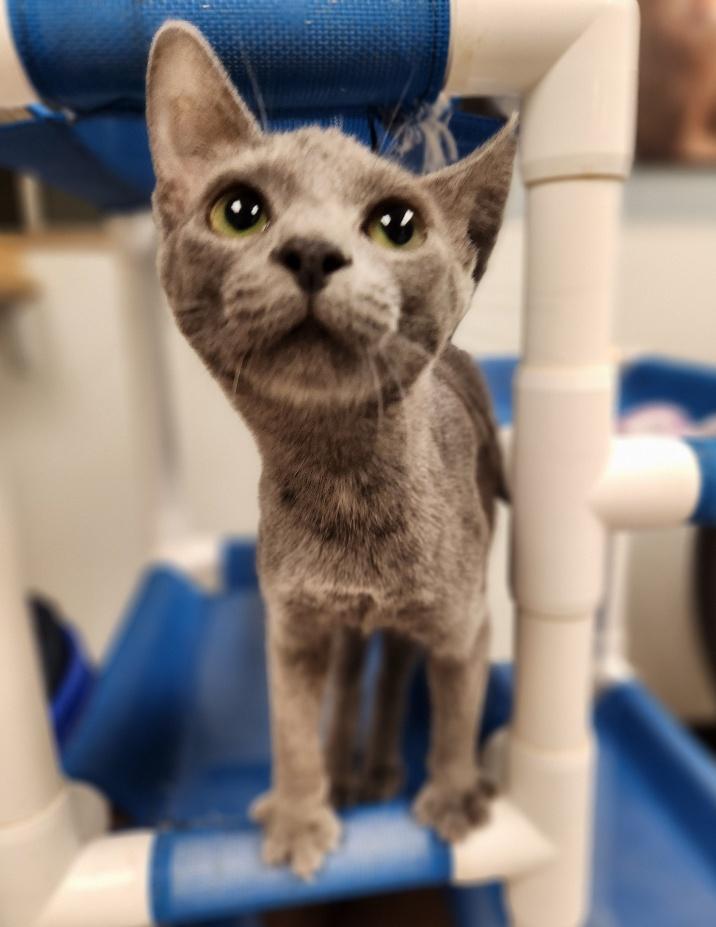 - Cat 27358 (Eleven) is shown as a Russian Blue Mix based solely on her appearance. We rarely take in purebred animals, so virtually all of them are a mix of several breeds. Do not make an adoption decision based only on our breed designation, especially if you are concerned about allergies.
