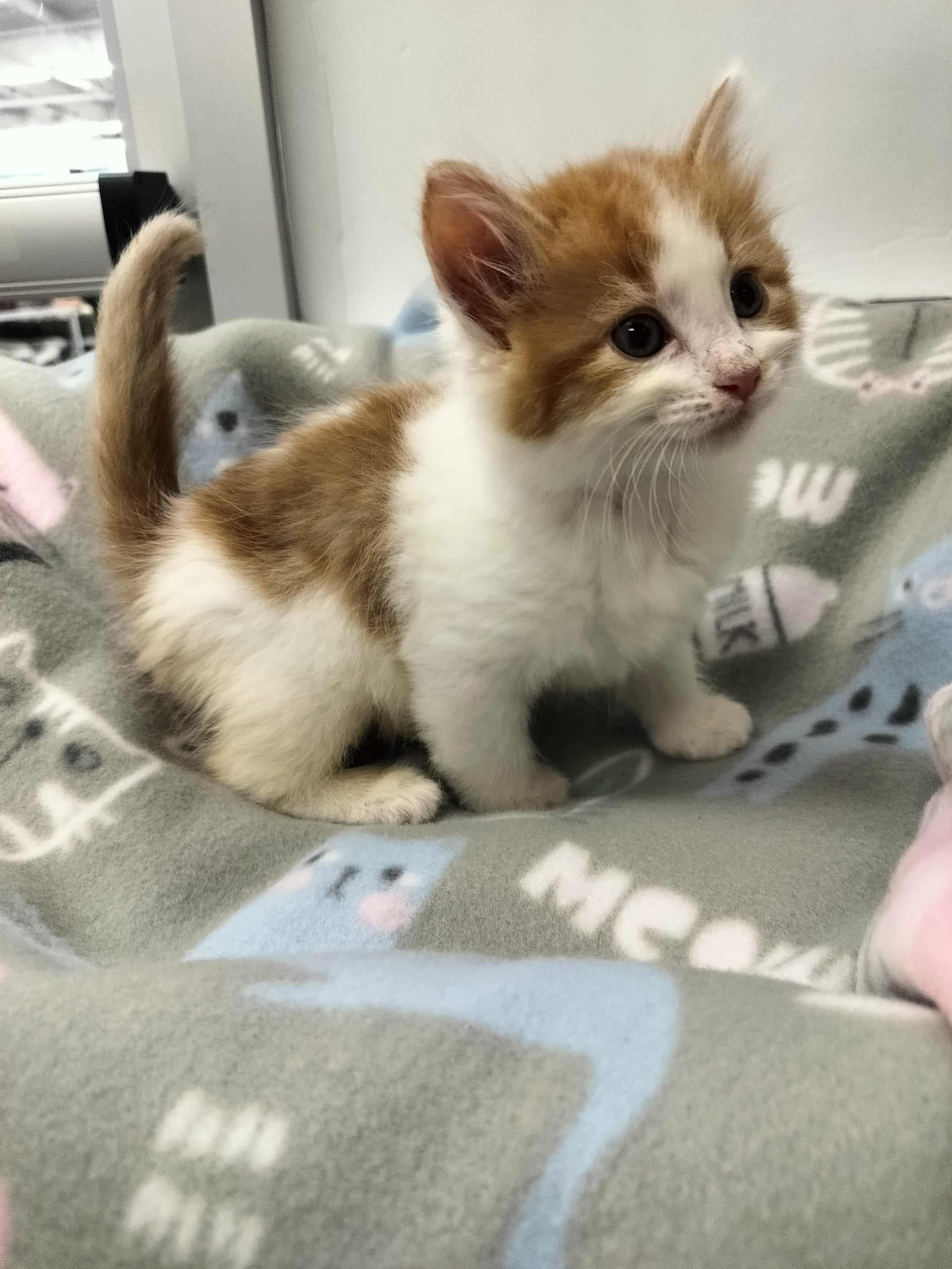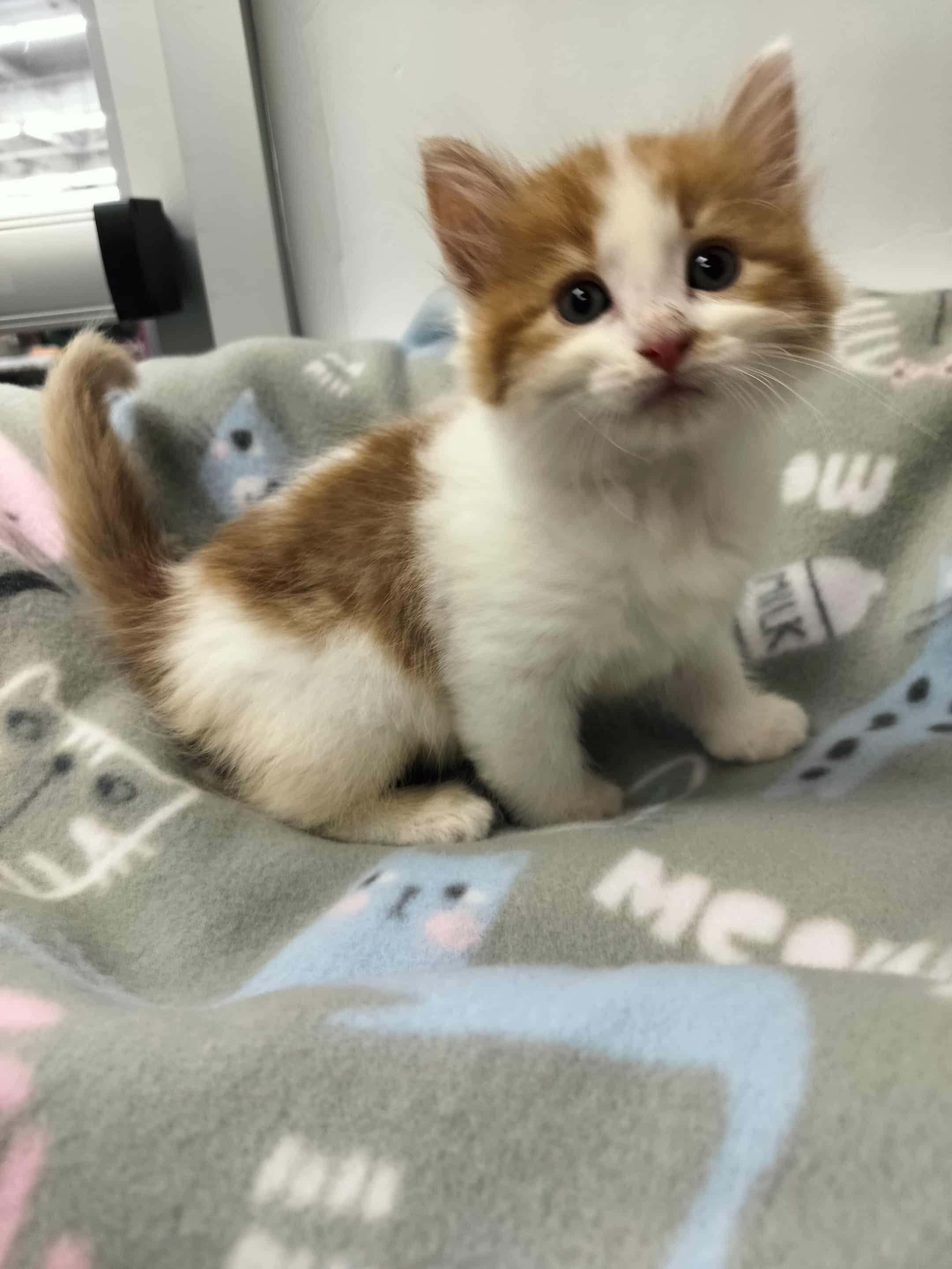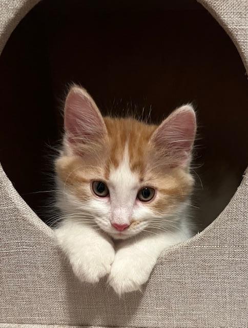 Meet Lightning, one of four adorable bottle babies rescued after being abandoned during a thunderstorm. Lightning is a bundle of energy. He loves to wrestle and play with his sisters, and as his name suggests, he is incredibly fast! Lightning also loves attention and cuddles, and he isn’t afraid to ask for them. He would love to be adopted with one of his sisters, especially Sally. You will often find them playing together or cuddled up during naps. Lightning has been introduced to other cats and young children and would do well with either with a proper introduction. Take this handsome boy home today!