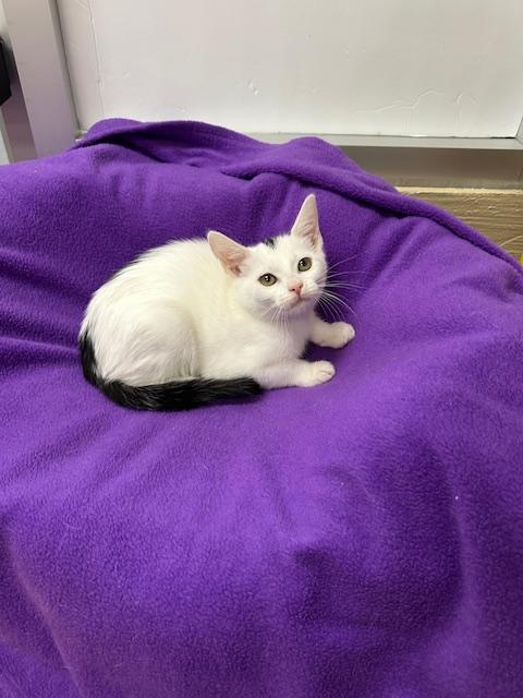 Miss Feta is equal parts sweet and sassy. While she does enjoy cuddles, she wants them on her terms, on her own time. She’s a curious girl, always exploring and looking around, scoping everything out. You can usually find her bossing her brothers around. Her favorite toys are things she can bat around. She gets along with her brothers, older fosters, and adult cats.