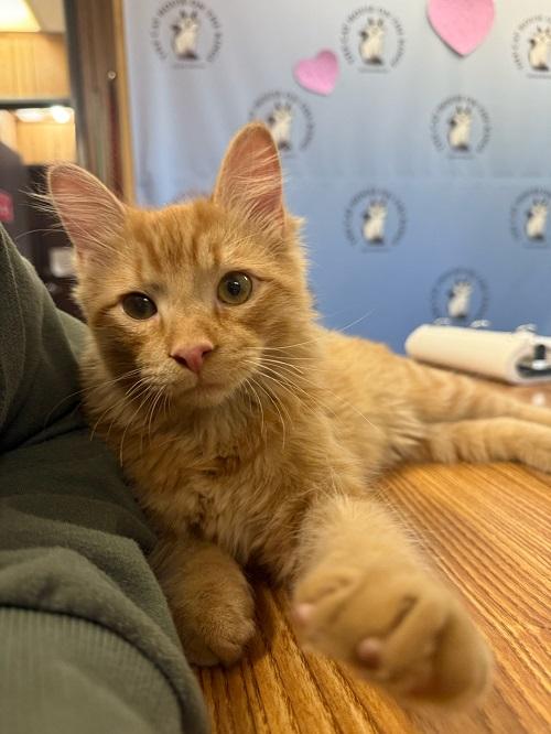 Columbus is a wonderful orange boy with a personality as warm and bright as his coat. From the moment he arrived on Columbus day his foster mom states he made himself right at home—friendly, confident, and ready to love. He gets along beautifully with everyone he meets: people, kids, dogs-big or small, and other cats alike.