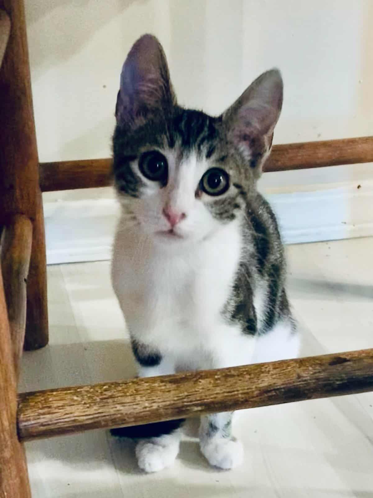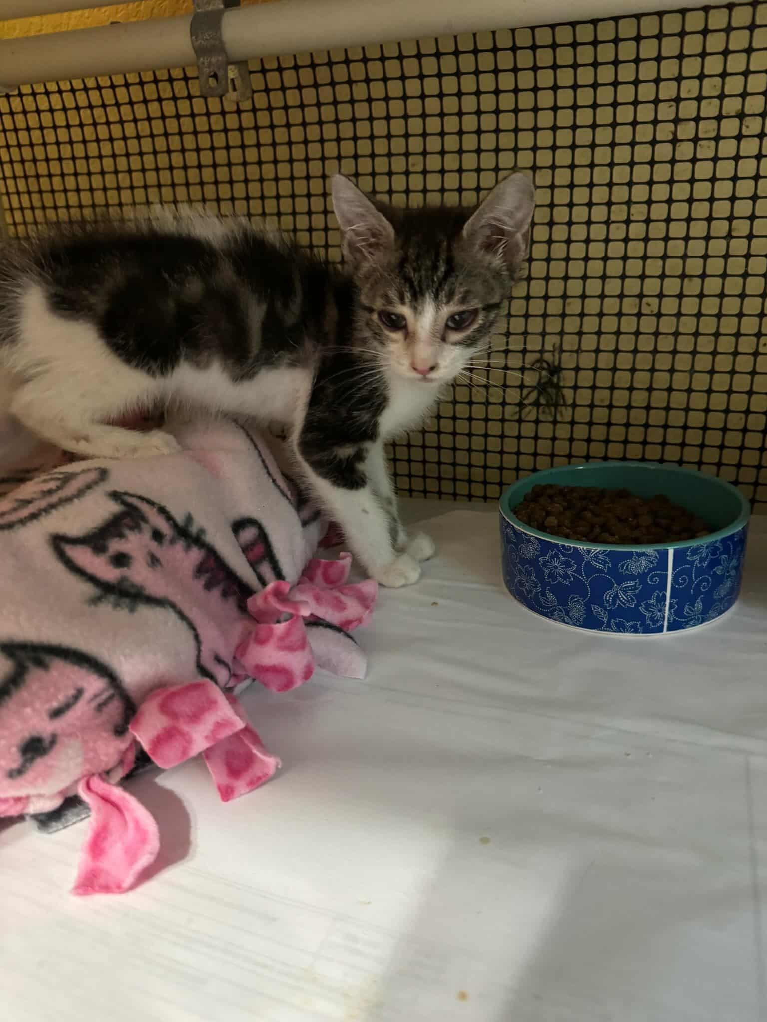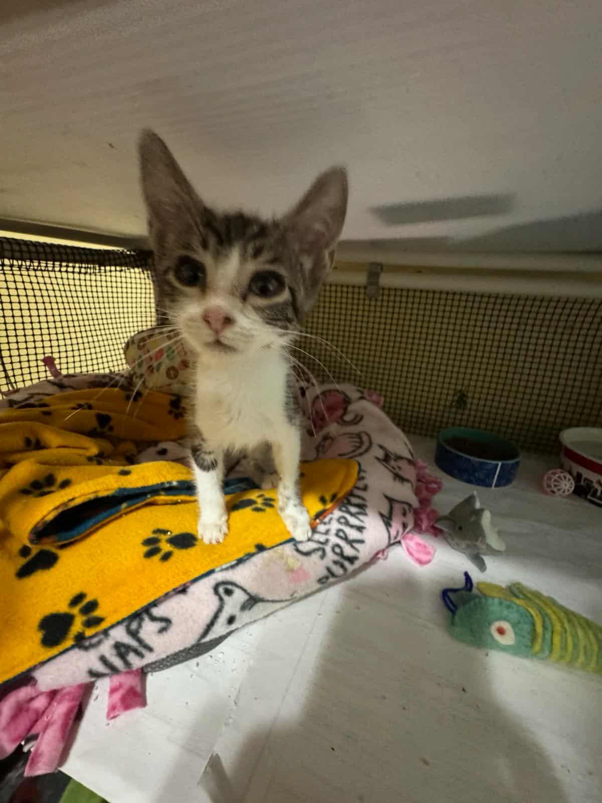 This darling kitten is ready to leave her tough beginning behind and find a forever family who will love her as much as she’ll love them.