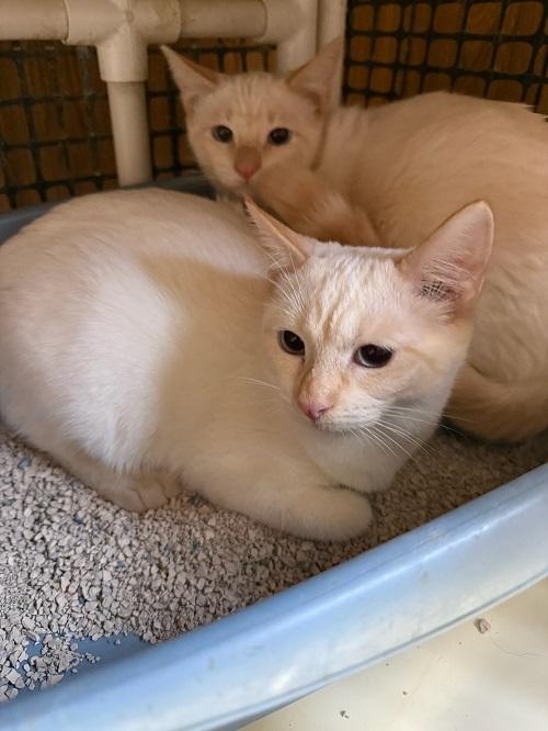 Precious Samantha is a darling and her sister Coco’s look-alike beloved bestie. She’s always with her sister, she loves to play with all the toys and brings bouncy energy to every little game and kitten adventure. She has extra confidence from her bond with Coco and together they love to cuddle cozily with their people and with each other. She’s a Siamese mix treasure in her dense, bunny-soft coat of luxe ivory with beautiful red tinted ears, nose, toes, and tail! Big baby blue eyes make her simply picture-perfect! Samantha is sure to be a joyful and cherished addition in a family that adores her. She would be overjoyed if sister Coco came too!