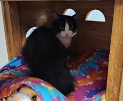 When you’re a dapper little dandy who’s always best-dressed in a polished fluffy black and white attire, it’s an extra bonus if you have a super sweet personality too! Meet handsome Benjamin, a bouncing bundle of happiness and affection always ready for playtime or a snuggle. It's take him a minute to warm up to new people, but He’s full of kitten adventure and hoots it up with his new friends with every kind of toy! His little eyes light up the minute you come into sight, and his purr motor immediately joins in! If he’s in the middle of some fun you can scoop him up for a quick cuddle and purr, then it’s back to the action! But when his energy runs down he’ll hope there’s a chance to cozy up in your lap to be loved on and catch a little snooze. Such a doll of a guy is sure to be a joy in a forever home as wonderful as he is. Best-dressed lovebug Benjamin is waiting to bound right into your loving heart and home!