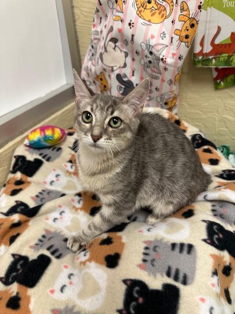 Meet Dusty – a gorgeous dilute tortie with confidence, curiosity, and plenty of kitten spark!