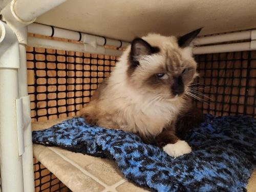This gorgeous gal ended up in animal control after many years of previously being adopted. She came along with her two other siblings. They were all a little apprehensive at first but have since warmed up to people. This little Birman mix kitten has little white feet that she uses to prance around like a little princess, she also has and the cutest personality. She also loves Christmas toys in the shape of a Santa Claus hat. She recently had a dental and she's current on her vaccines. Cashmere loves being brushed and held like a baby. She also loves to talk and talk for days and she doesn't seem to mind well-behaved dogs. We would love to send Cashmere to a loving home before the end of 2025.