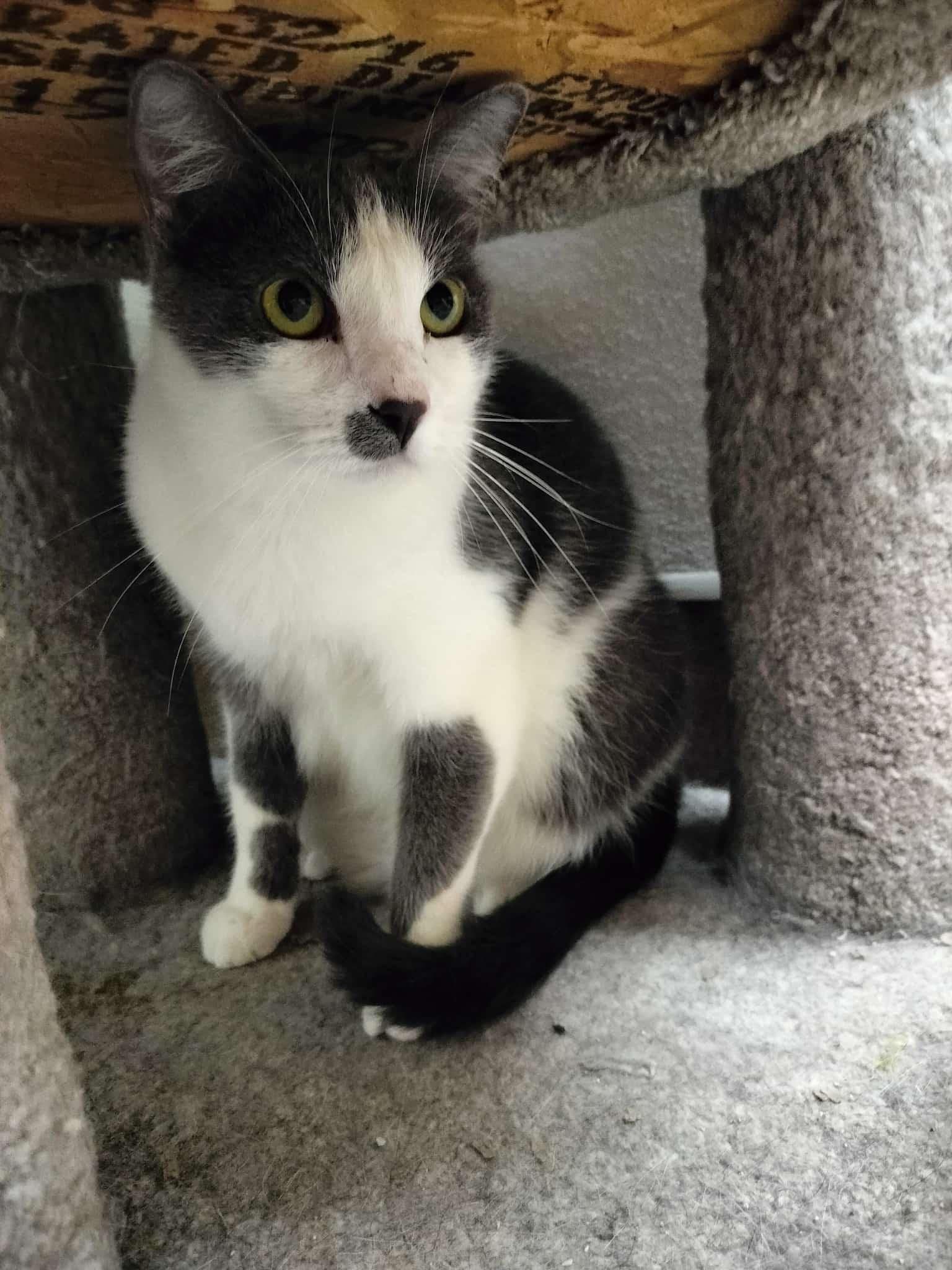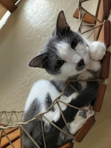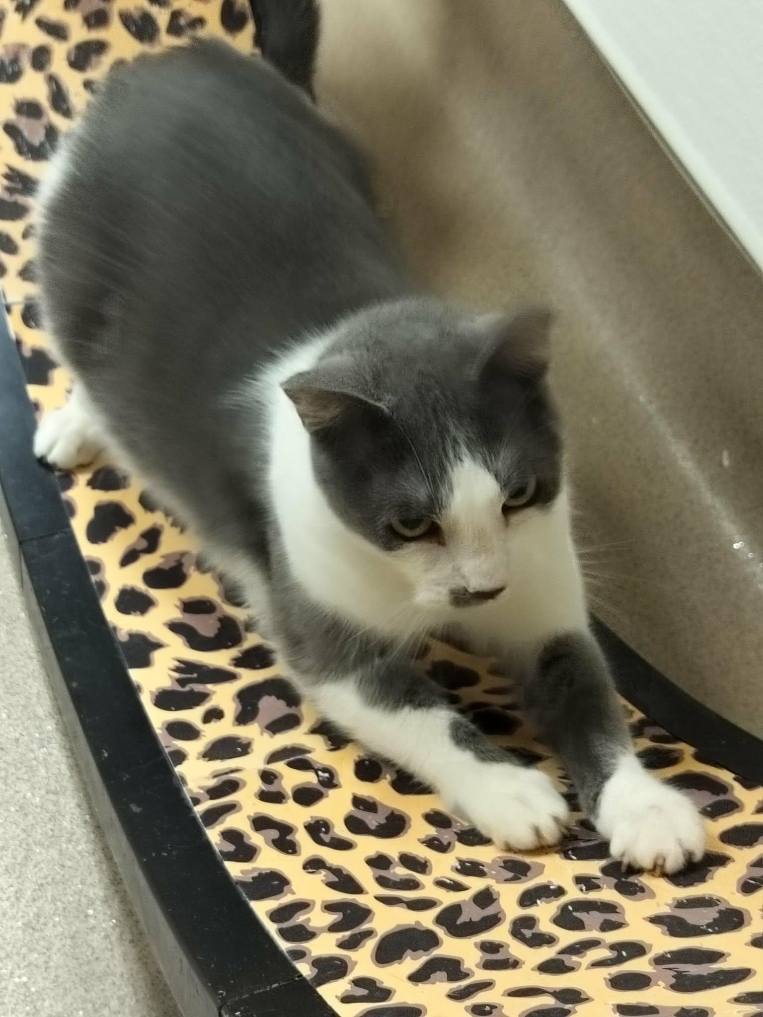 Hi there! My name is Ollie, I was born outside by a tire shop with my three siblings. I didn’t like it outside; it was scary and dirty and there were lots of ugly bugs! My siblings and I got to go to a foster home where it was clean and I didn’t need to feel afraid anymore. My foster mom gave me soooo much love; lots of snuggles and pets. I got to play with toys and my favorite toy is Fishing LIne. I even discovered playing with water was fun too! I also get along well with many other felines whom my mom is also fostering. I sure hope a family will take me home with them so I can show them that I like to play, love to purr, and I will feel safe from all those yucky bugs!
