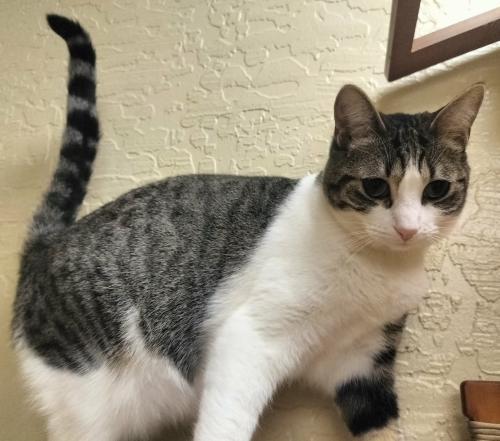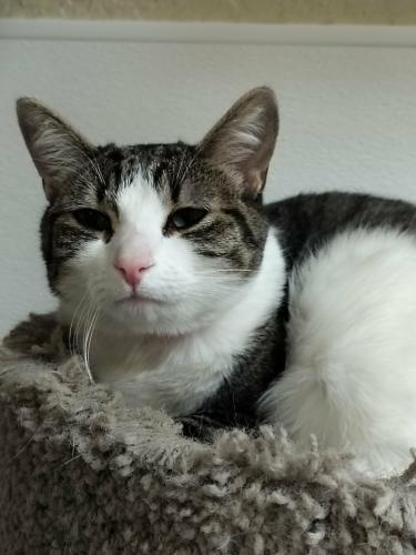 While she may be a little shy at first, don’t let that fool you—she's a bundle of fun! Her favorite activities include pouncing on the laser dot, scaling her tall cat post, chasing after her toys, and enjoying her favorite shows on YouTube Cat TV.