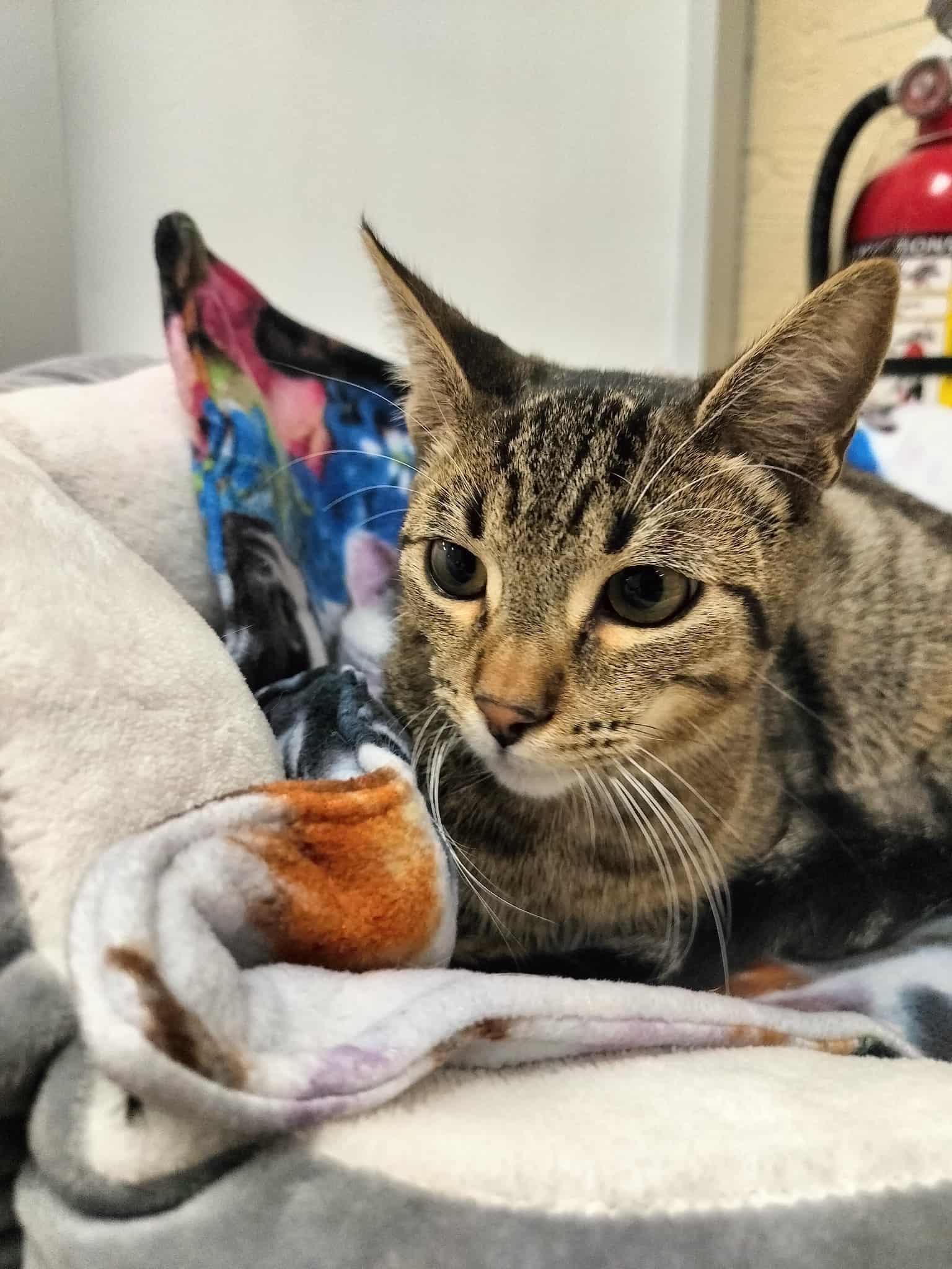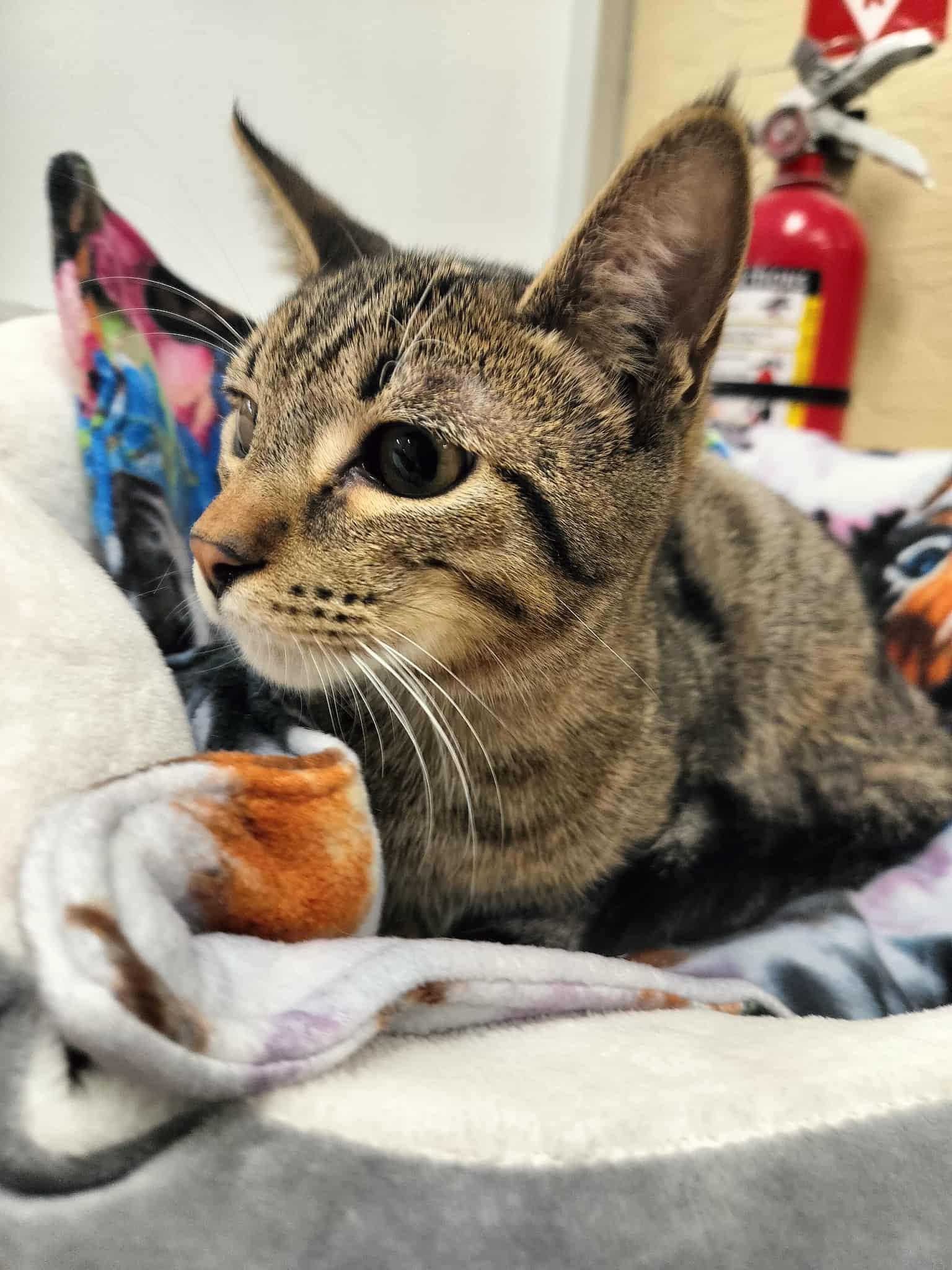 Capybara is a sweet, gentle kitten who starts out a little shy, but once he feels safe, his true personality shines. He’s quick to purr the moment you pick him up and has the cutest habit of curling up in plastic bins for long naps. Playtime means chasing strings with full focus, and when he’s done, he loves to snuggle up with his siblings or any friendly cat nearby. He’s very food motivated, which makes bonding with him both fun and easy—treats will win him over every time. Capybara is also kid-friendly, with a calm and loving nature that makes him a wonderful fit for a family.