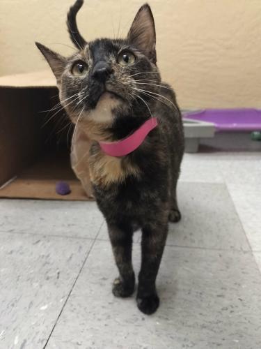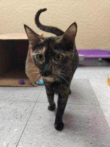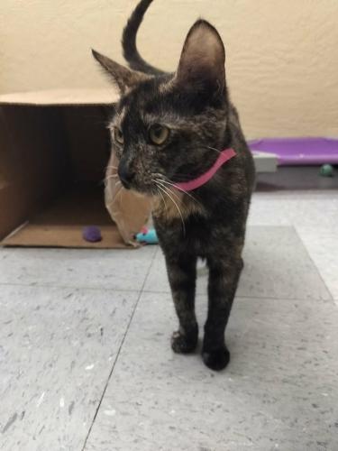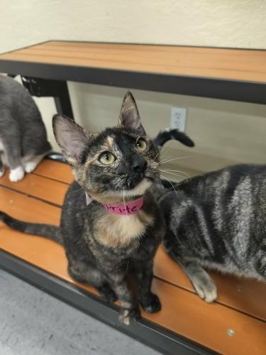 This gorgeous Tortie is called Sprite. She is a confident explorer and enjoys climbing to higher places where she can survey her surroundings. She is a playful, energetic kitten who gets along well with the other kittens in her foster home. She may take a few days to warm up to any new cats in her world. Sprite also has a sweet and loving demeanor. She enjoys snuggling up with her humans and has a delightful purr. She has had exposure to school aged children and small dogs. Sprite is a lovely kitten who is now ready to find a forever home of her own.