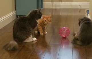 When I got to my new home, I was greeted by my two new brothers, Kirby who is 4, and Murray who is 5. They seemed okay, but didn't want to play with me. Kirby kept hissing and Murray just watched me from afar as I played with all my new toys.